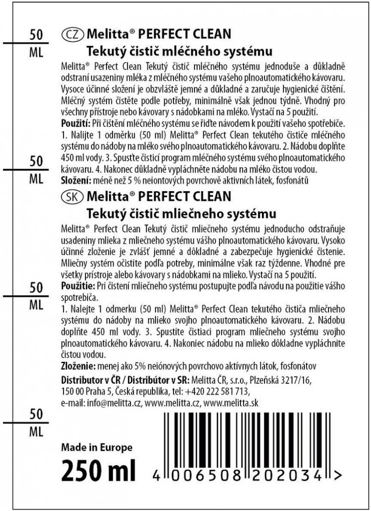 Aby Váš kávovar dělal tak výtečnou kávu jako těsně po jeho pořízení, je důležité ho pravidelně čistit. Pokud s jeho pomocí připravujete i mléčné nápoje, neměli byste zapomínat ani na čistění kávovaru od zbytků mléka. Melitta® PERFECT CLEAN je tekutý čistič, díky kterému dojde k důkladnému a přitom jemnému čištění plnoautomatických kávovarů od zbytků mléka. Kávovar tak bude opět hygienicky čistý. O...