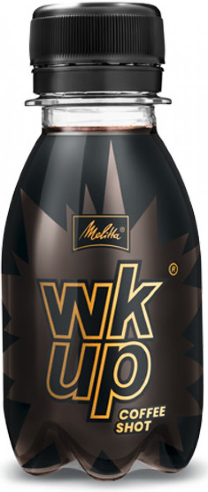 Melitta Wkup coffee shot 90 ml Kávový nápoj. Chuť aromatická, plná a mírně sladká. Kávová dávka obsahuje 135 mg kofeinu. To odpovídá dvojitému espressu nebo čtyřem plechovkám Coly. Nejlepší je vychutnávat chlazené. Vždy, když potřebujete doplnit energii. Složení: kávový nápoj 88,6 % (voda, tekutý kávový extrakt 7 %), sirup z invertního cukru, regulátor kyselosti: hydrogenuhličitan sodný, modifikovaný škrob, přírodní aroma Perfektní na cesty, do auta na kolo. Země původu: Německo Zvýšený obsah kofeinu (150mg / 100ml). Nedoporučuje se pro děti, těhotné nebo kojící ženy. Wkup coffee shot je silné jako dvojité espresso.