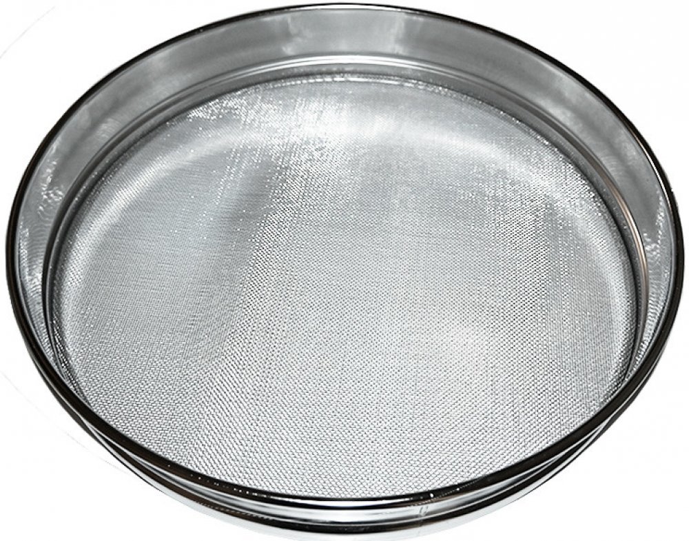 Velký nerezový cedník z kvalitní nerezové slitiny s hrubým sítem (oko orozměrech 2x2 mm) Mellarius pro nádoby od tohoto výrobce o průměru 40,5 cm.