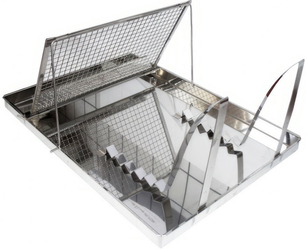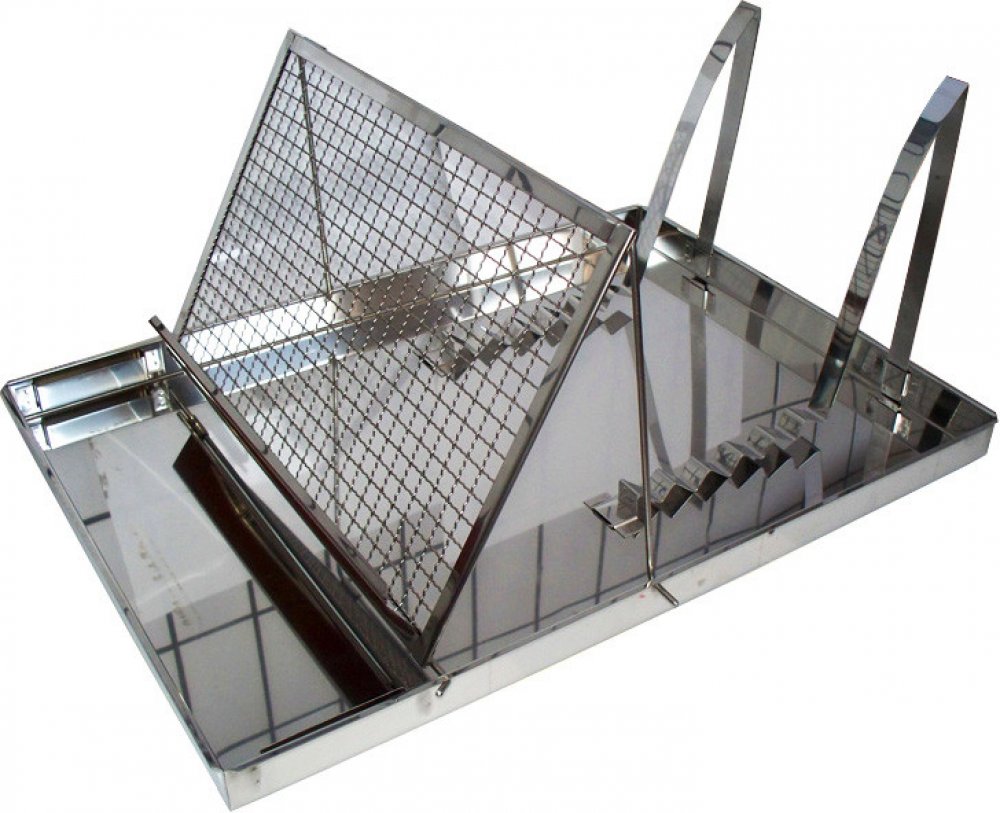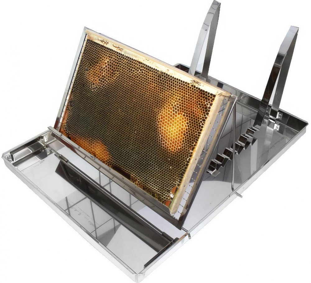 Odvíčkovací talíř nerezový - velký. Nerezový odvíčkovací talíř s možností odkládání plástů je nesmírně šikovná a praktická pomůcka, která vám výrazně usnadní a zefektivní celý proces odvíčkování. Tento kvalitní nástroj je navržen s ohledem na potřeby včelařů všech úrovní zkušeností. Odvíčkovací talíř představuje promyšleně zkonstruovanou obdélníkovou nádobu vyrobenou z vysoce odolného nerezového plechu, která je vybavena stabilním stojánkem a speciální mřížkou, jež slouží k pohodlnému položení zavíčkovaného plástu určeného k odvíčkování a následnému vytočení lahodného medu. Významnou předností tohoto velkého nerezového talíře je jeho unikátní konstrukce, která nabízí velmi užitečnou možnost odkládání již zpracovaných plástů, což výrazně zvyšuje efektivitu vaší práce při vytáčení medu.rozměr talíře: 690 mm x 500 mm,