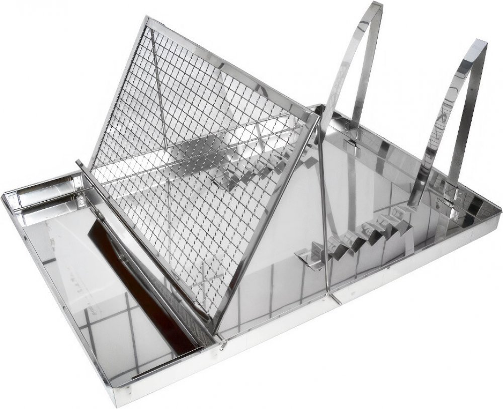 Díky integrovanému roštu a stojánku máte rámek vždy ve správné poloze. Vysoké okraje zajišťují, že při práci zůstává vše tam, kde má. Skvělý pomocník při větším počtu úlů nebo během hlavní sezóny.