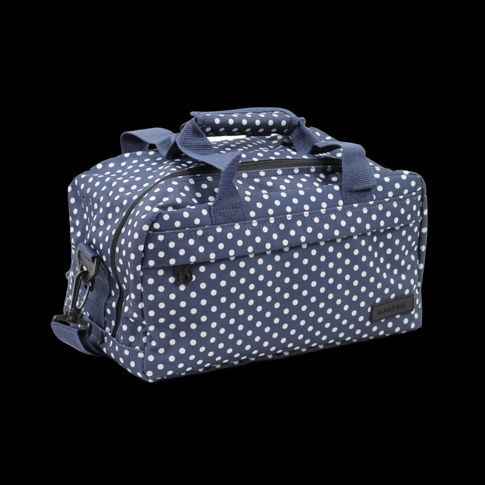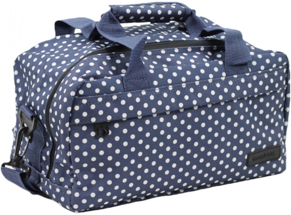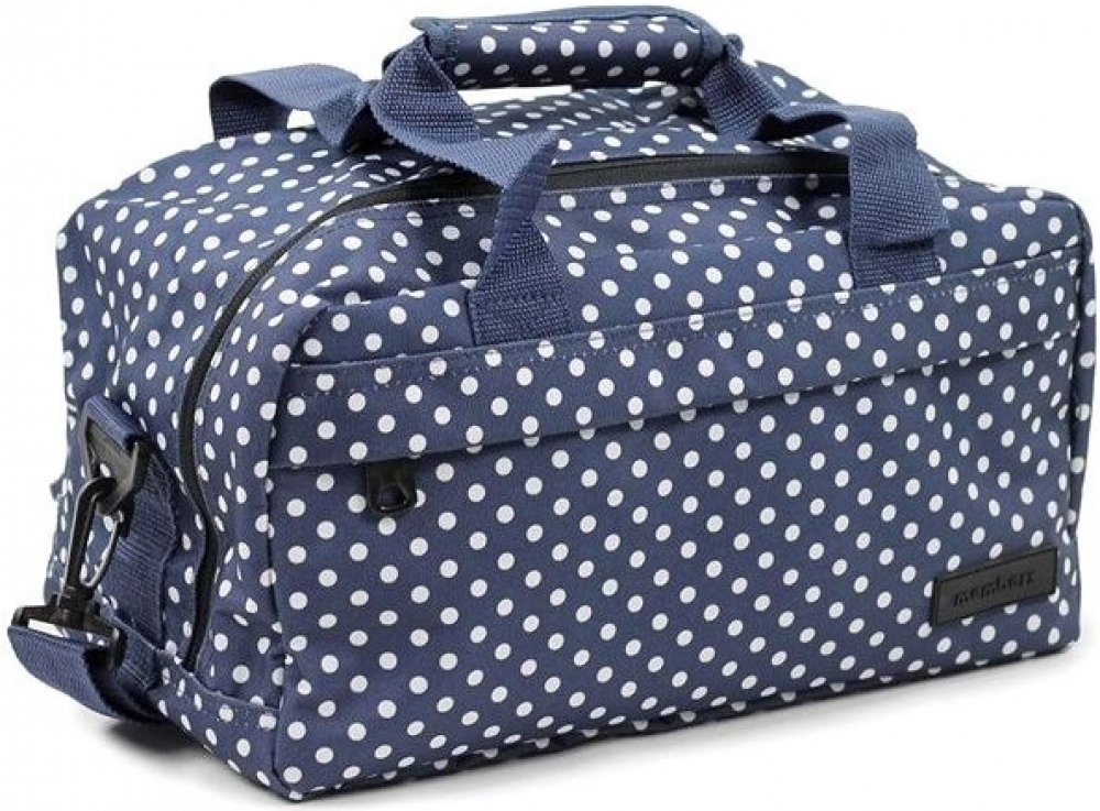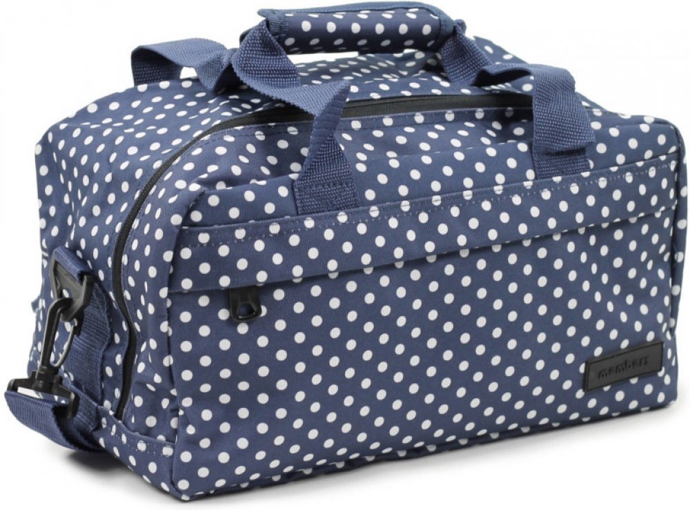 Taška má nastavitelný odnímatelný popruh přes rameno. Na zadní straně tašky je umístěn popruh sloužící jako držák na výsuvné madlo cestovního kufru.