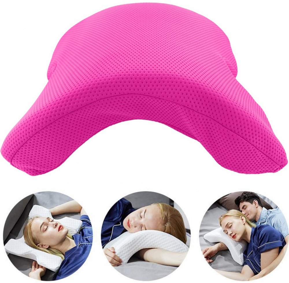 Polštář má klenutý tvar, který umožňuje položit ruku pod hlavu bez znecitlivění.