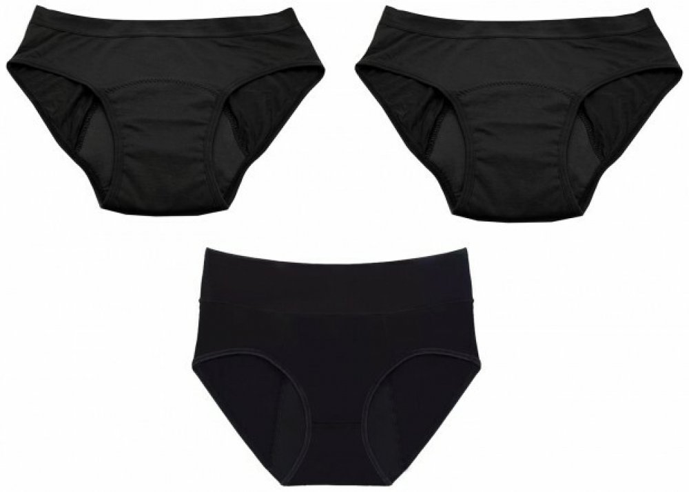 Výhodný balíček menstruačních kalhotek obsahuje 3 kusy, 2x Midi a 1x Full. Typ full je pro silnou menstruaci, typ Midi je pro střední menstruaci. Díky skvělému zpracování neprotečou.Níže jsou uvedeny velikosti kalhotek, pružnost a popis pro snadnější výběr. Nabízíme možnost výměny/vrácení do 14 dnů.Obsahují 4 vrstvy ochrany, které jsou lehké, prodyšné a spolehlivé.Jsou super tenké, ale přesto absorpční.Použité materiály jsou funkční a prodyšné, což zajišťuje odvod vlhkosti od těla a udržuje vás suché.Jsou pohodlné, nešustí a zcela diskrétní pod oblečením.Mají certifikaci Öko-Tex 100, což zaručuje kvalitu a bezpečnost.Můžete je nosit samostatně nebo jako zálohu k jiným menstruačním produktem, například ke kalíšku, tamponům nebo menstruačním houbám.Jsou vhodné pro každodenní nošení nebo na noc.Po vyprání je můžete opět použít, což šetří životní prostředí i vaše výdaje.Midi kalhotky jsou vyrobeny z příjemného přírodního materiálu bambusové viskózy. Jsou vhodné pro středně silnou menstruaci a absorbují 20-30 ml tekutiny.Složení kalhotek je následující: vnější a vnitřní vrstva - 95% bambusová viskóza, 5% spandex, střed - 80% polyester, 20% nylon.Full kalhotky jsou vyrobeny z příjemné bavlny a jsou vhodné pro silnou menstruaci. Mají vyšší pas a absorbují 30-35 ml tekutiny.Vnější vrstva: 95 % bavlna, 5 % spandex. Vnitřní: 100 % rychloabsorpční polyester. Střed: 80 % polyester, 20 % nylon, prodyšný polyuretan.Údržba: Pro správnou údržbu kalhotek je doporučeno před prvním použitím je vyprat. Můžete je prát s podobnými barvami v jemném programu pracího cyklu. Nepoužívejte aviváž ani bělidlo. Kalhotky nechte uschnout na vzduchu, nesušte je v sušičce ani je nežehlete. Při správné péči mají kalhotky stejnou životnost jako běžné spodní prádlo.Výběr velikosti:Při výběru velikosti kalhotek je dobré mít na paměti, že jsou navrženy tak, aby seděly trochu těsněji než standardní spodní prádlo. Pružnost kalhotek typu Midi odpovídá standardnímu prádlu, zatímco kalhotky typu Full jsou méně pružné. Pas Boky (cm)XS 64-68 85 -90S 69-73 91-96M 74-79 97-102L 80-85 103-108XL 86-91 109-114XXL 92-97 115-120XXXL 98-104 121-125