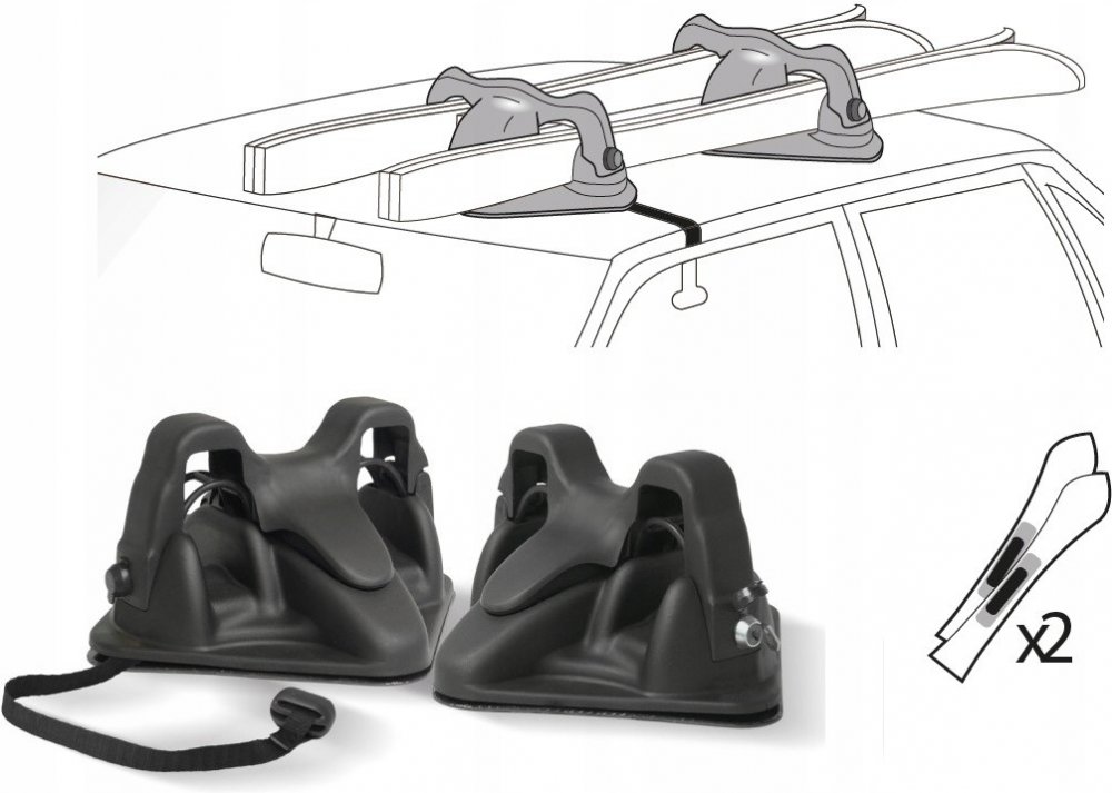 Uzamykatelný magnetický nosič lyží s možností přepravy až 2 párů lyží. Rychlá a bezpečná montáž.