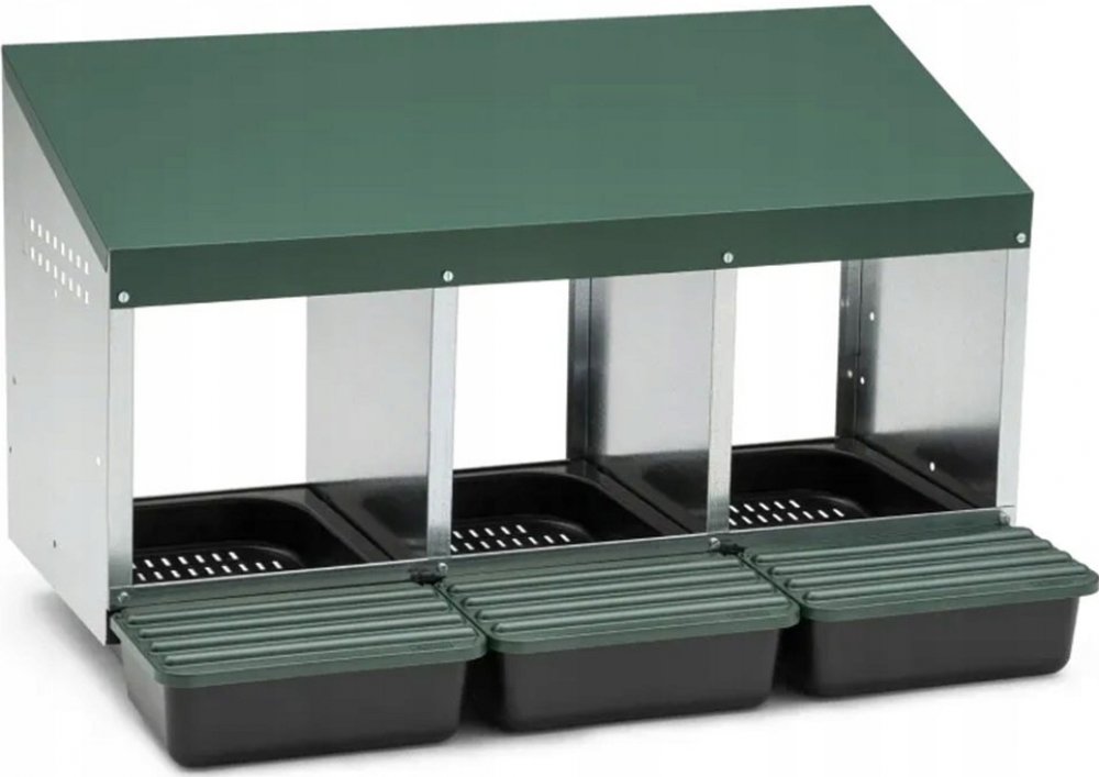 Snáškové hnízdo pro tři nosnice Snáškové hnízdo pro tři nosnice je ideálním řešením pro chovatele, kteří chtějí efektivně a hygienicky sbírat vejce od svých slepic. Pozinkované snáškové hnízdo je navrženo tak, aby poskytlo pohodlí až třem nosnicím současně. Díky 3 snáškovým hnízdům je toto zařízení vhodné pro hejno až 15 slepic, což z něj činí skvělou volbu pro menší farmy i hobby chovatele. Jední...