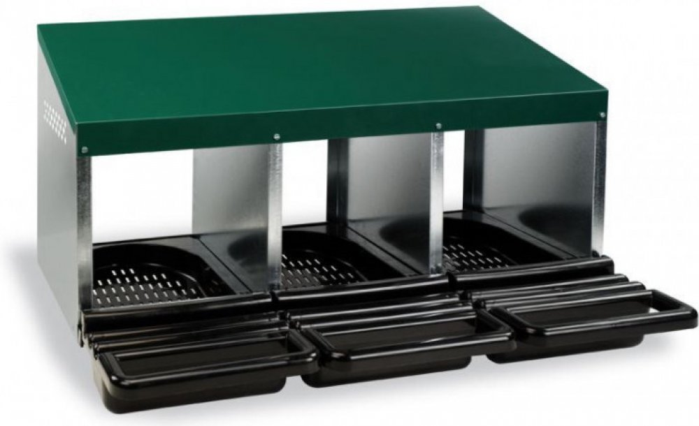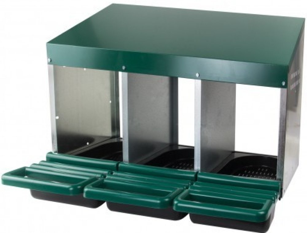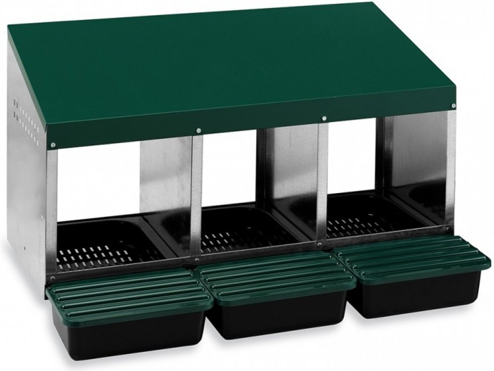 MenaVET Snáškové hnízdo pro slepice se sběrným košíkem na vejce kovové 3 přihrádky