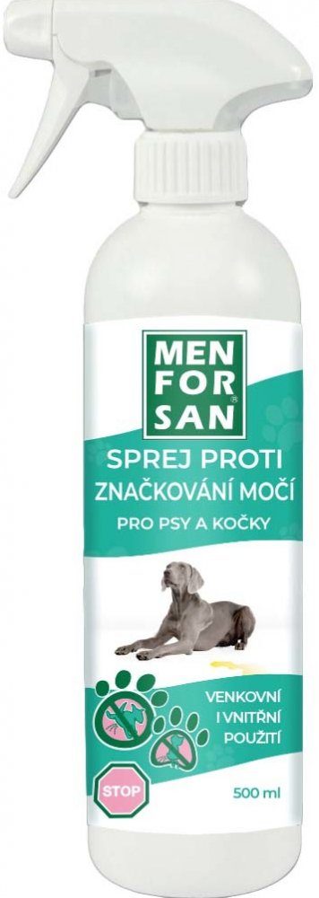 Repelent Merfonsan proti značkování je speciálně navržen tak, aby odrazoval zvíře v močení na místech, kde to nepovažujeme za vhodné. Týká se to především oken, rohů domu, fasád, kol vozidel, sloupků od plotu, atd. Sprej lze použít jak venku, tak i v domácím prostředí. Jedná se o účinný sprej, který můžete použít k výcviku vašeho čtyřnohého přítele nebo jako ochranu vašeho majetku před znečištěním...