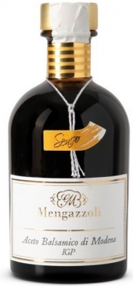 Balzamikový ocet Modena I.G.P. Senso ORO je balzamikový ocet se silnou a jedinečnou organoleptickou hodnotou díky souboru vyvážených vůní, které jsou silně sjednoceny v bohaté směsi, schopné propůjčit skutečnou kulatost vůní, chuti a hustoty.