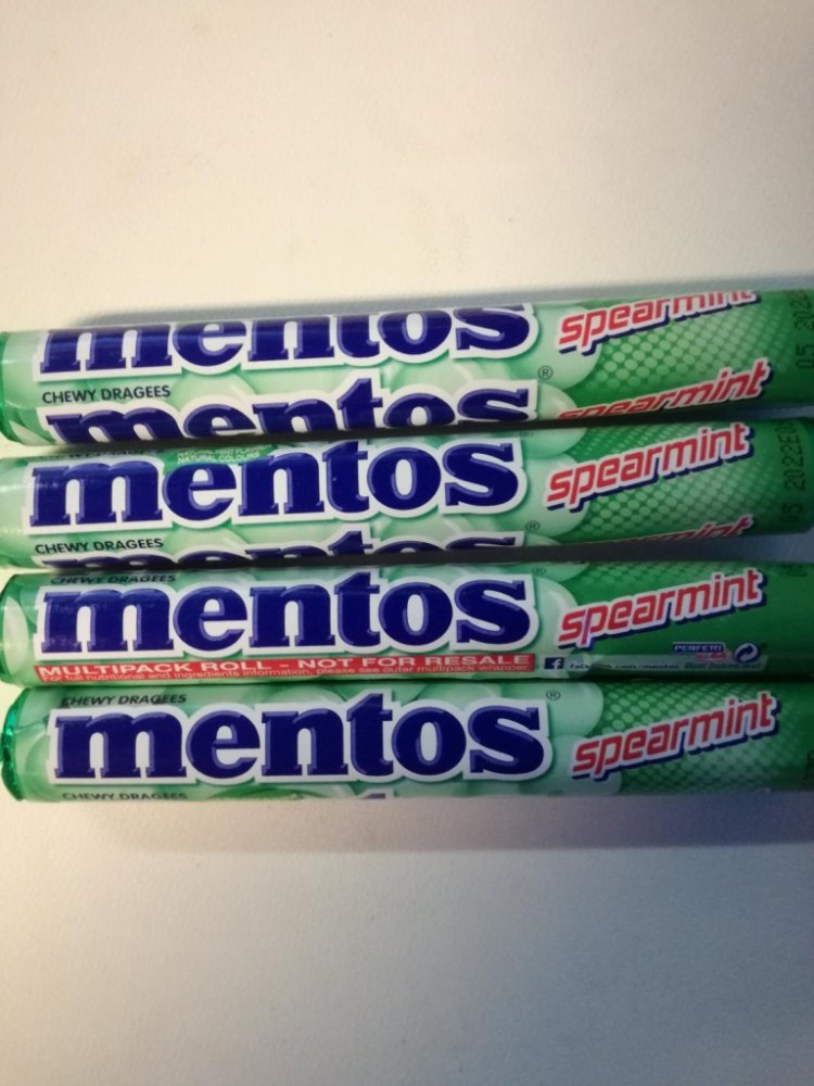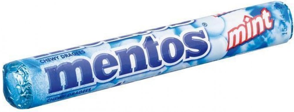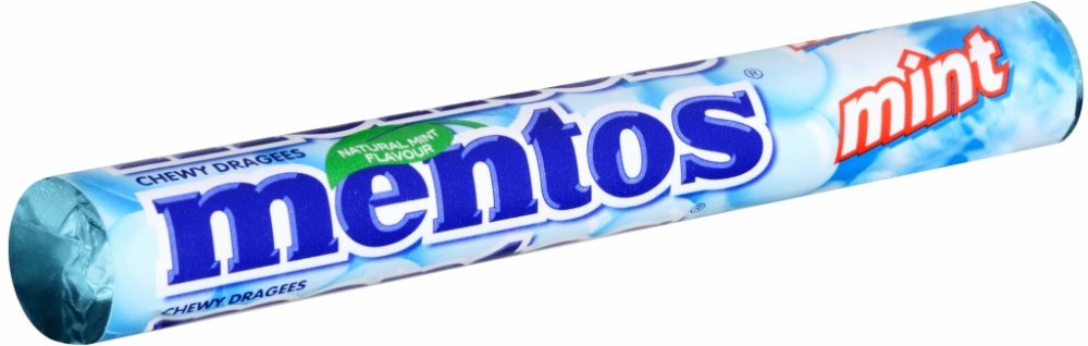 Dražé se žvýkací náplní (30 %) s mátovou příchutí.