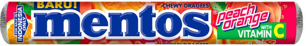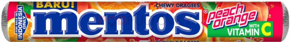 Složení: cukr, glukózový sirup, rostlinný tuk, regulátor kyselosti, rýžová mouka, aroma (syntetické, přírodní), rostlinné zahušťovadlo, vitamin C, ovocný extrakt 0,03 % (broskev, pomeranč), povlaková látka, rostlinný emulgátor (sukrózové estery mastných kyselin), přírodní barviva (beta-karoten z Blakeslea trispora, červená řepa). Obsahuje antioxidant ...