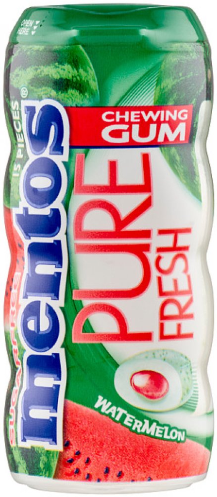 Druh balení: Dóza Standardizovaná značka: Mentos Přidané látky: Obsahuje Loga třetí strany: Food Safe Loga třetí strany: Zelený bod Regulovaný název výrobku: Dražovaná žvýkačka s tekutou náplní 6,5 % s příchutí vodního melounu, se sladidly.