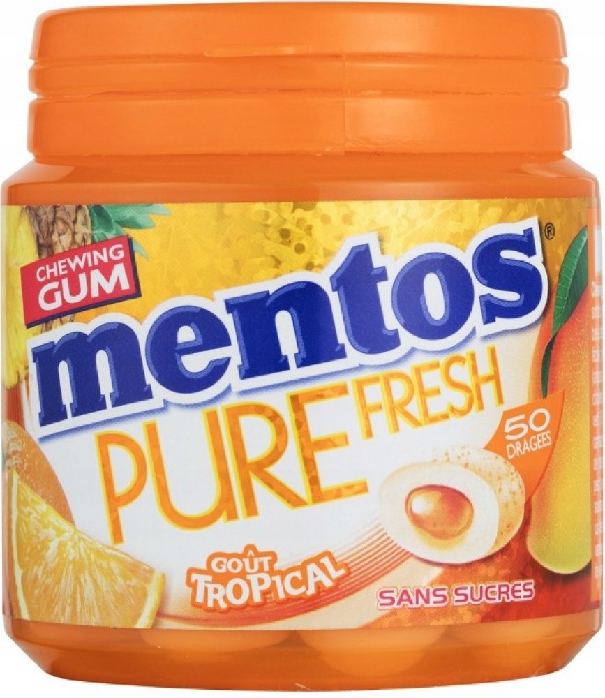 Složení: sladidla (xylitol,sorbitoly, mannitol, maltitoly, acesulfam K, sukralóza,aspartam), gumová báze, stabilizátor (glycerol), aromata,maltodextrin, škrob, emulgátory (lecitiny (ze sóji),estery sacharózy a mastných kyselin), zahušťující látky (žvýkačka,žvýkačka),kokosový tuk, antioxidant (E321), ...