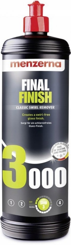 MENZERNA Final Finish 3000 je ideální volbou pro ty, kteří hledají profesionální výsledky při detailování svých vozidel. Tento produkt je perfektní pro použití po silnějších lešticích pastách k dosažení konečného lesku a ochrany laku.