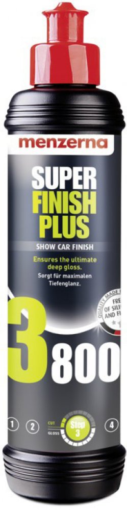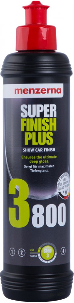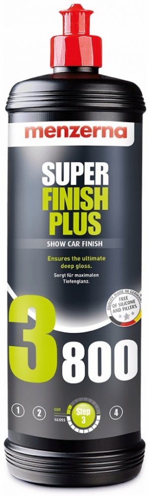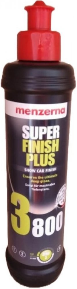 Ultrajemná pasta Menzerna Super Finish Plus 3800 Prémiová lešticí pasta systému Menzerna, která se používá jako poslední krok při vícestupňovém leštění (finišovací pasta). Menzerna Super Finish Plus 3800 je nadstandardní, top leštící pasta určená pro nejnáročnější aplikace. Umožní dosáhnout mimořádného výsledku - maximálně detailního a hlubokého lesku. Tato lešticí pasta má prakticky nulovou schopnost odstraňovat vady laku (škrábance), používá se tedy vždy až po leštění hrubšími pastami pro odstraňění hologramů a maximalizaci lesku. Klíčové vlastnosti pasty Menzerna Super Finish Plus 3800 Snadné použití. Účinnost i na tvrdých lacích (koncerny Daimler-Benz, BMW a Volkswagen). Minimální spotřeba. Minimální nebo žádná prašnost. Bez obsahu silikonů (bezpečnost pro lakovny a následnou aplikaci keramických povlaků nebo vosků). Optimální rychlost otáček je v rozmezí 1200 až 2000 ot / min.