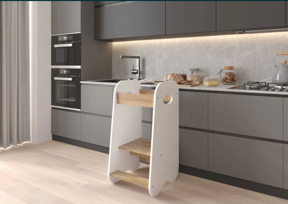 Učící věž je to skvěly kus nábytku, který umožňuje každodenní zapojení děti do mnoha kuchyňských aktivit. Umožňuje nejen skvělou zábavu, ale i rozvoj samostatnosti a kreativity pro nejmenší. Pomáhat při vaření nebo mytí nádobí nebo se jen dívat, jak vaříte, se pro vaše dítě stává konečně možným a bezpečným. Výrobek je určen pro děti od 1 roku. Parametry: Barva: bílá zlatý dubVýška: 90 cm,šířka 50 cm,Hloubka 40 cmHmotnost: 12 kgVýškově nastavitelná platforma: 22 cm, 30 cm, 40 cmVyrobena z kvalitního materiálu, kterým je laminovaná nábytková deska 18 mm.Stabilní a bezpečný - do 50 kg Prvky pro montáž jsou součástí sadyPoužívejte pod dohledem dospělé osoby