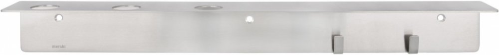 Nástěnný držák Supply od Meraki bude vaším pomocníkem v koupelně či v kuchyni. Bude se vám hodit k uskladnění vašich oblíbených krémů nebo mycích prostředků či k zavěšení utěrky a různých doplňků. Najdete na něm tři otvory na lahve Meraki a dva háčky. Supply je vyrobený z nerezové oceli s broušeným stříbrným povrchem, který nepropustí žádnou vodu. Držák bude stylovým doplňkem a zároveň pomůže udrž...