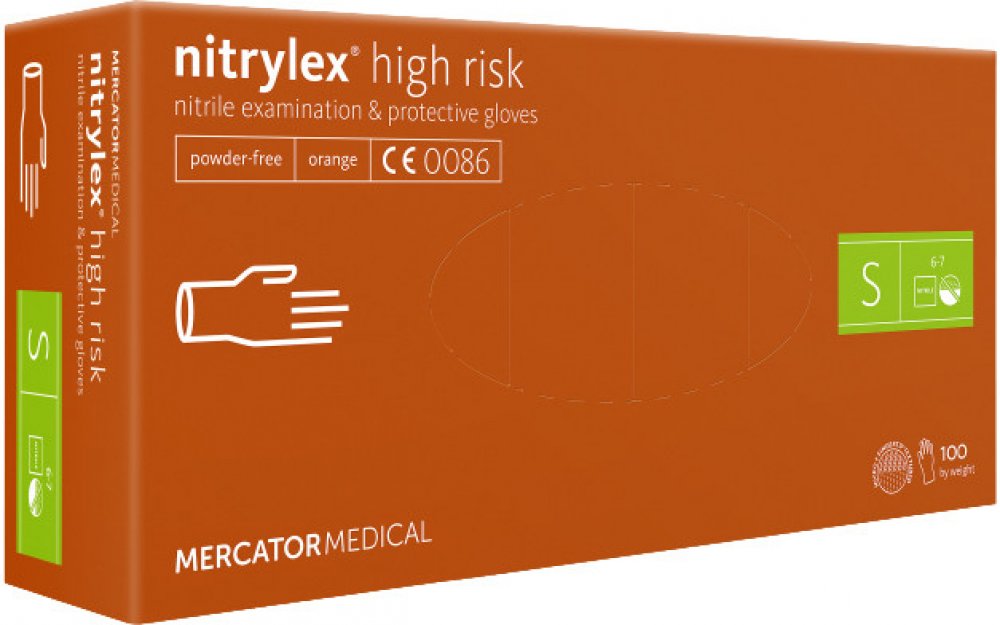 Nitrylex high risk jsou rukavice vhodné pro práci v náročných podmínkách. Jsou mnohem silnější než standardní vyšetřovací a ochranné rukavice, prodloužená manžeta pak zajišťuje dodatečnou ochranu v mokrém prostředí. Nitrylex high risk jsou rukavice určené uživatelům, kteří jsou nejvíce vystaveni nebezpečným situacím.