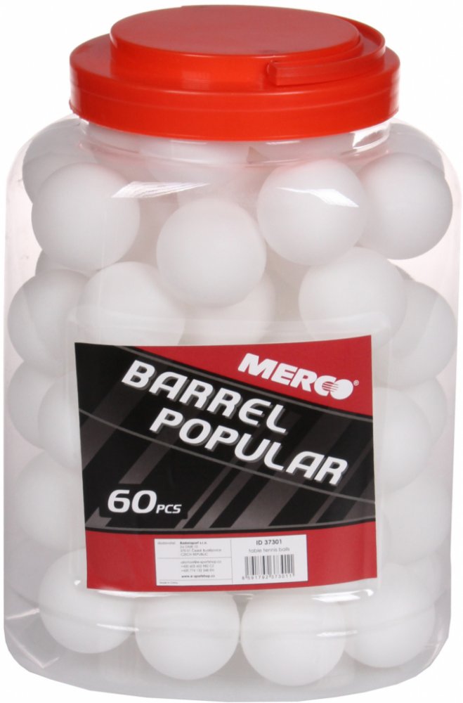 Pingpongové míčky Merco Popular jsou tréninkové míčky vhodné pro začínající hráče a rekreační hráče, kteří si s jejich pomocí osvojí základní údery a techniku. Díky své ceně jsou i vhodnou volbou pro školy a sportovní kluby. Plastové míčky Popular jsou vyrobené v bílé barvě bez loga, s klasickým průměrem 40 mm. Tato extra velká sada šedesáti míčků je dodávaná v praktickém, plastovém balení pro snadné uskladnění a přenášení. Rozměr balení 25 x 18 x 12 cm, hmotnost balení 240 g.