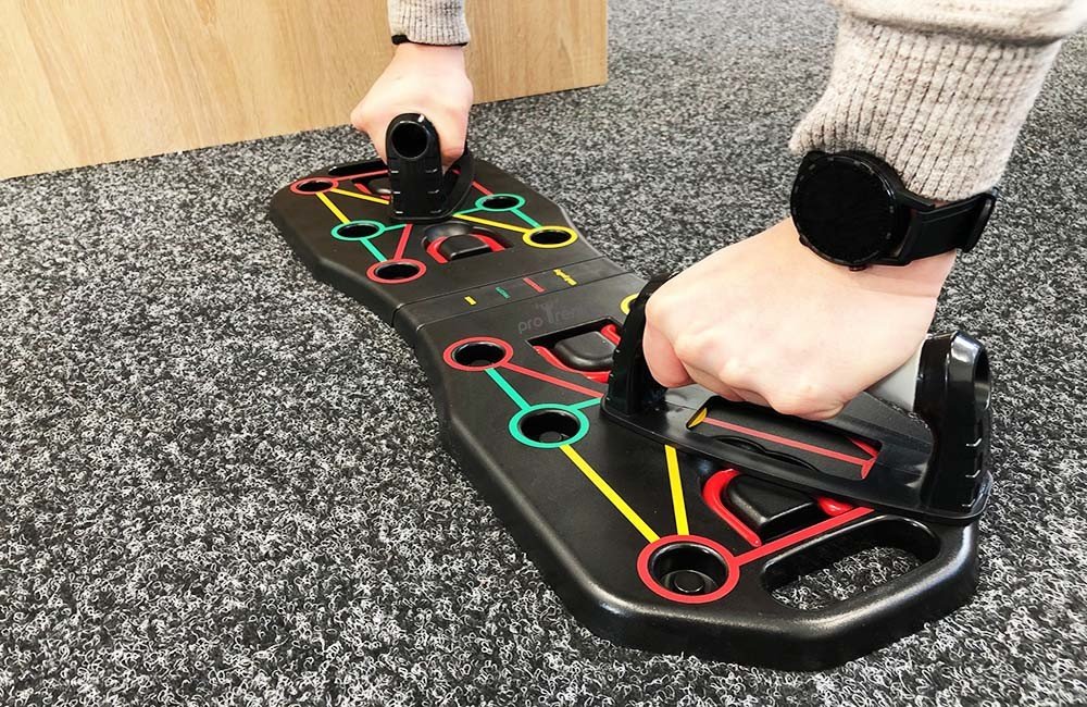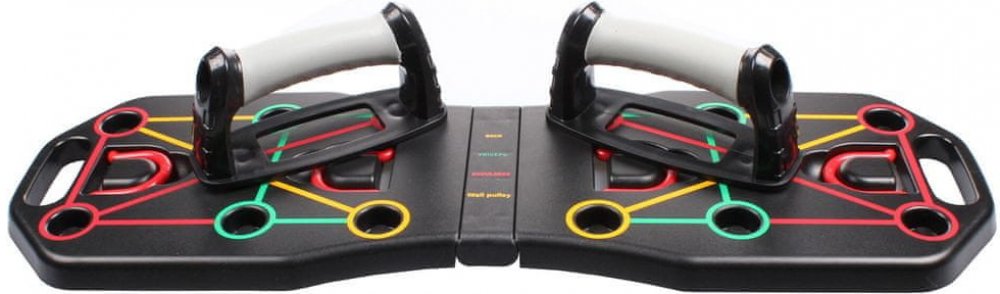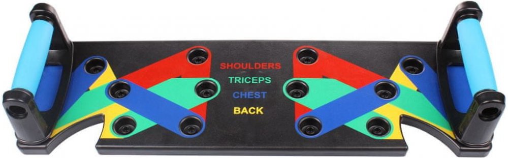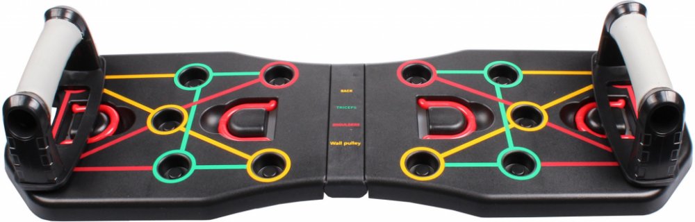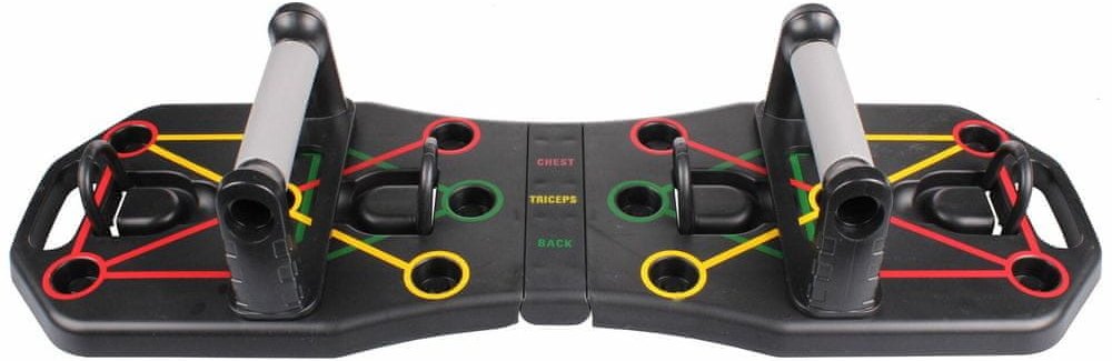 Mercox multifunkční deska na procvičení zad, prsních svalů, ramen a tricepsu. Podle toho jakou partii chcete procvičit, si zvolíte barvu do které umístíte přiložené opěrky a můžete začít cvičit. Rukojeti jsou vyrobeny z odolného plastu ABS s protiskluzovými rukojeti.