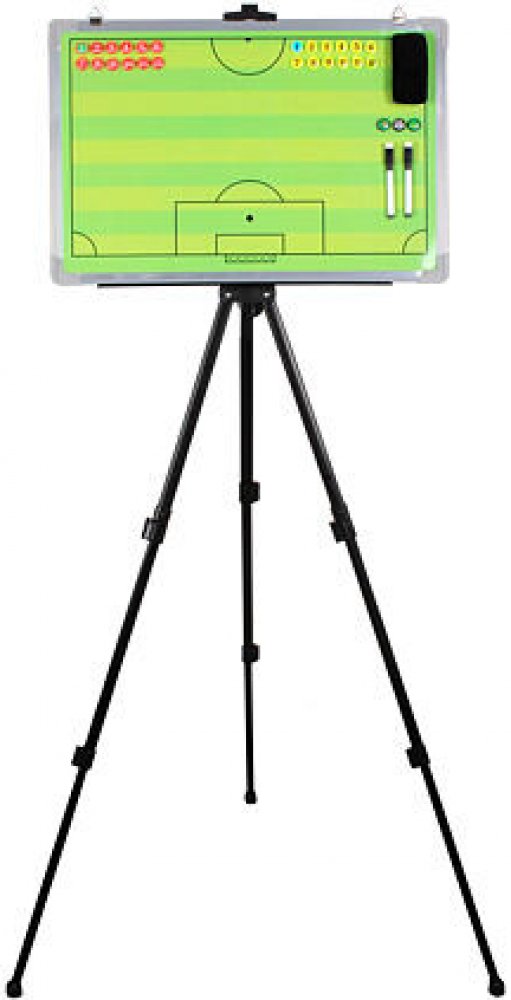 Trenérská tabule na fotbal je nezbytný doplněk každého fotbalového trenéra napříč všemi soutěžemi. Taktická fotbalová tabule Merco Fotbal 45 je oboustranná magnetická deska s barevným provedením poloviny hřiště z jedné strany a z druhé strany celého fotbalového hřiště, je vyrobená z PVC materiálu v hliníkovém rámu. Součástí fotbalové tabule Merco Fotbal 45 jsou barevně rozlišené magnety symbolizující hráče a černý popisovač, jehož součástí je i malá houbička pro smazání. Závěsná trenérská tabule Merco Fotbal 45 je ideální pomocník pro taktické porady a vytvoření takové herní situace, díky které Váš tým spolehlivě zaskóruje. Celkový rozměr této tabule je 60 x 40 cm a její hmotnost 1,1 kg. Navíc tento model obsahuje i nastavitelný stojánek a praktickou tašku, díky které celý set pohodlně kamkoliv a kdykoliv přenesete.
