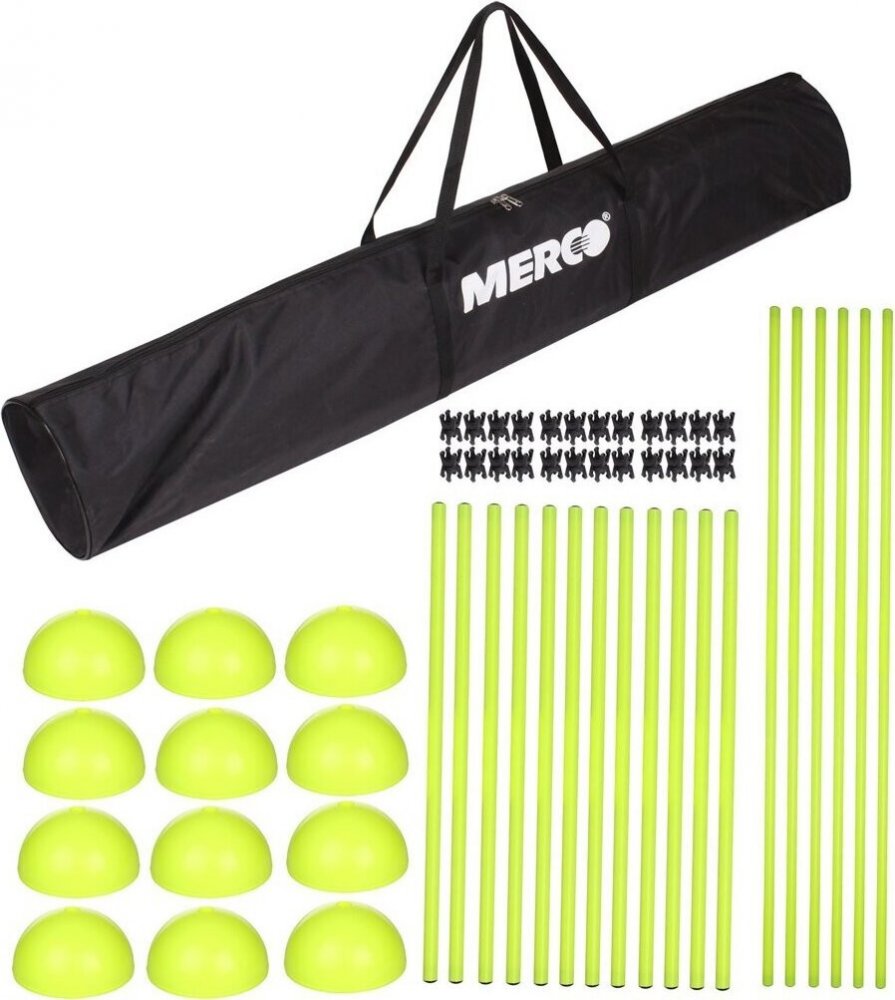 Set obsahuje celkem 6 víceúčelových výškově nastavitelných překážek Neon DS 11. Součástí je pevná polyesterová taška pro snadné přenášení a uskladnění.