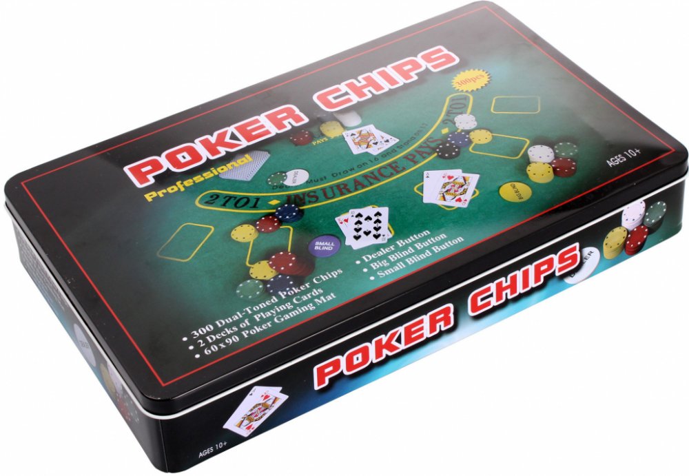 Milujete hazard a napětí? Umíte blafovat a držíte si pokerovou tvář? Pak je sada na poker Poker Box 300 je přesně pro vás. Důležitá je taktika a trochu štěstí. Pozvěte kamarády a začněte vymýšlet pokerovou taktiku, hráč který má nejvyšší kombinaci vyhrává. Kompletní set na poker je vhodný pro začínající i pokročilé hráče, kteří na tuto hru nedají dopustit. Případně si zahrajte světoznámý Black Jack. Sada obsahuje všechny důležité komponenty od hracího plátna až po žetony a dva balíčky hracích karet, vše naleznete v praktické kovové krabičce. Obsah balení: 300 ks žetonů v hodnotách 1 – 50 1 kus – žeton Small blind 1 kus – žeton Big blind 1 kus – žeton Dealer Látkové plátno o rozměrech 90 x 58 cm. Dvě krabičky karet.