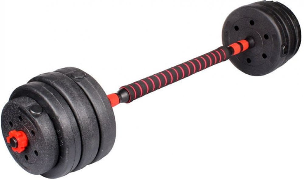 Sada nakládacích činek Merco Power Set 40 patří do základního vybavení každé domácí posilovny. Oproti klasickým činkám má tato sada velkou výhodu, a to, že Power Set můžete využívat jako dvě jednoruční činky či jako jednu obouruční nakládací činku. Balení obsahuje dvě jednoruční osy, spojovací díl pokrytý pěnou a sadu kotoučů, díky kterým si nastavíte celkovou hmotnost činky až na 40 kg. Pokud potřebujete doplnit svou domácí posilovnu nejen činkami, koukněte na naší kompletní nabídku fitness: stroje, lavice a jiné pomůcky Power Set 40: - sada: 2x jednoruční osa, spojovací díl, 4x uzávěr, kotouče 4 x 1.25 kg + 4 x 2.5 kg + 8 x 3 kg - materiál: plast, cement - jednoruční osa: délka 50,5 cm, průměr držadla 3 cm - spojovací část obalená pěnou: délka 39 cm, průměr 4 cm - kotouč 1.25 kg: průměr 16,5 cm, šířka 3 cm - kotouč 2.5 kg: průměr 21 cm, šířka 4 cm - kotouč 3 kg: průměr 22 cm, šířka 4,5 cm