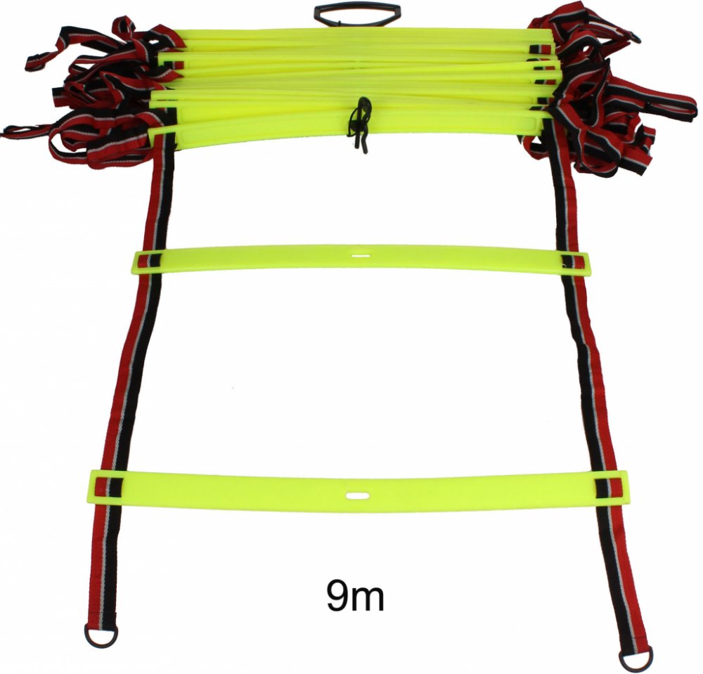 Agility žebřík pro kondiční přípravu sportovců. Plastové příčky žebříku jsou snadno nastavitelné pro přizbůsobení vzdálenosti mezi jednotlivými příčkami podle potřeb uživatele. Unikátním vylepšením je madlo, které je možné protáhnout středem žebříku. Madlo pak slouží nejen jako nosič, ale zabraňuje i zamotání žebříku. U obou variant je šířka 53 cm.