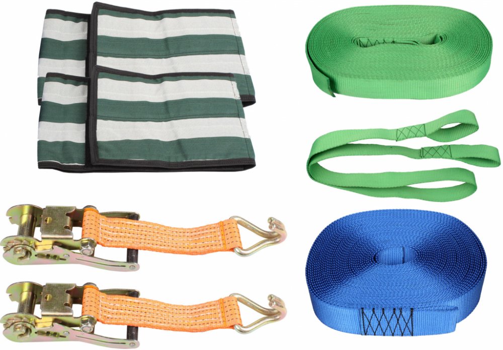 součástí sady slackline je 7 produktů