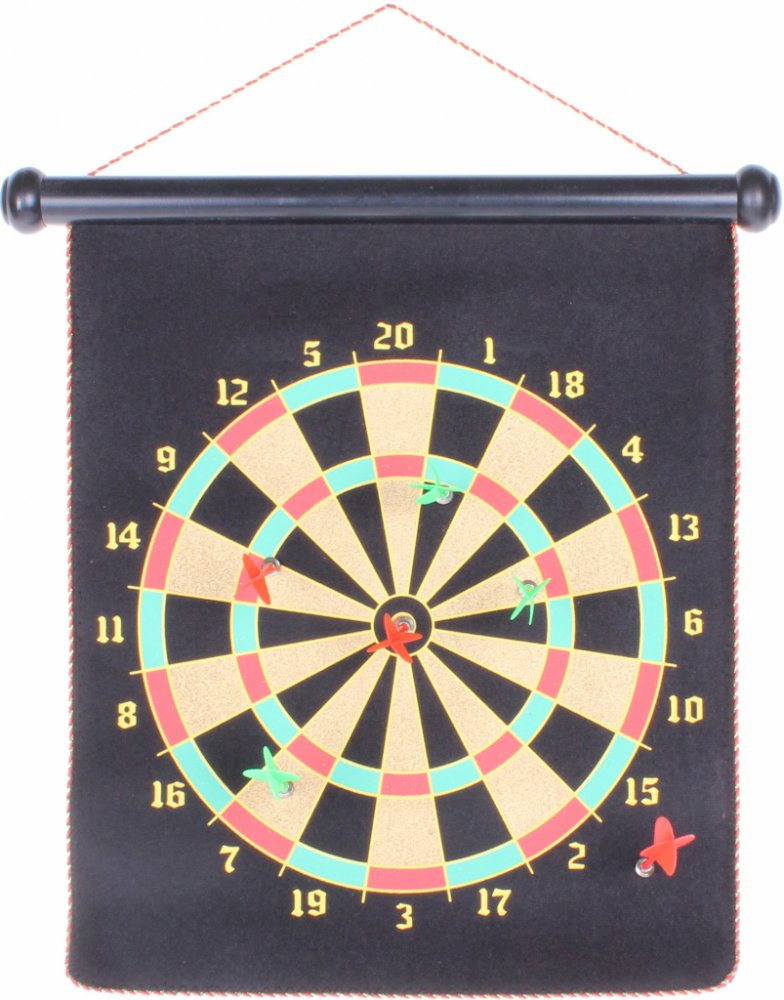 Oboustranný magnetický terč se šipkami Merco Roll Up bude skvělým doplněním Vaší sbírky her. Ohebná magnetická deska s rozměrem 42 x 37 cm potažená semišem zahrnuje klasický šipkařský terč z jedné strany a hru “bullseye“ na straně druhé. Součástí terče je i šest plastových, 8 cm dlouhých šipek (tři červené + tři zelené) se silným magnetem o průměru 1 cm. Magnetické šipky Merco Roll Up představují nejen zaručenou zábavu, ale i zaručeně bezpečnou zábavu. Používání magnetu u šipek vylučuje jakékoliv zranění hráčů (především těch nejmenších) a jakékoliv poškození dveří, nábytku nebo zdi, podle toho, kam magnetický terč Merco Roll Up umístíte. Po ukončení hry stačí terč srolovat do role 43 x 4,5 cm a uložit ho do příštího šipkařského turnaje. Celková hmotnost terče Merco Roll Up včetně šipek je 650 g.