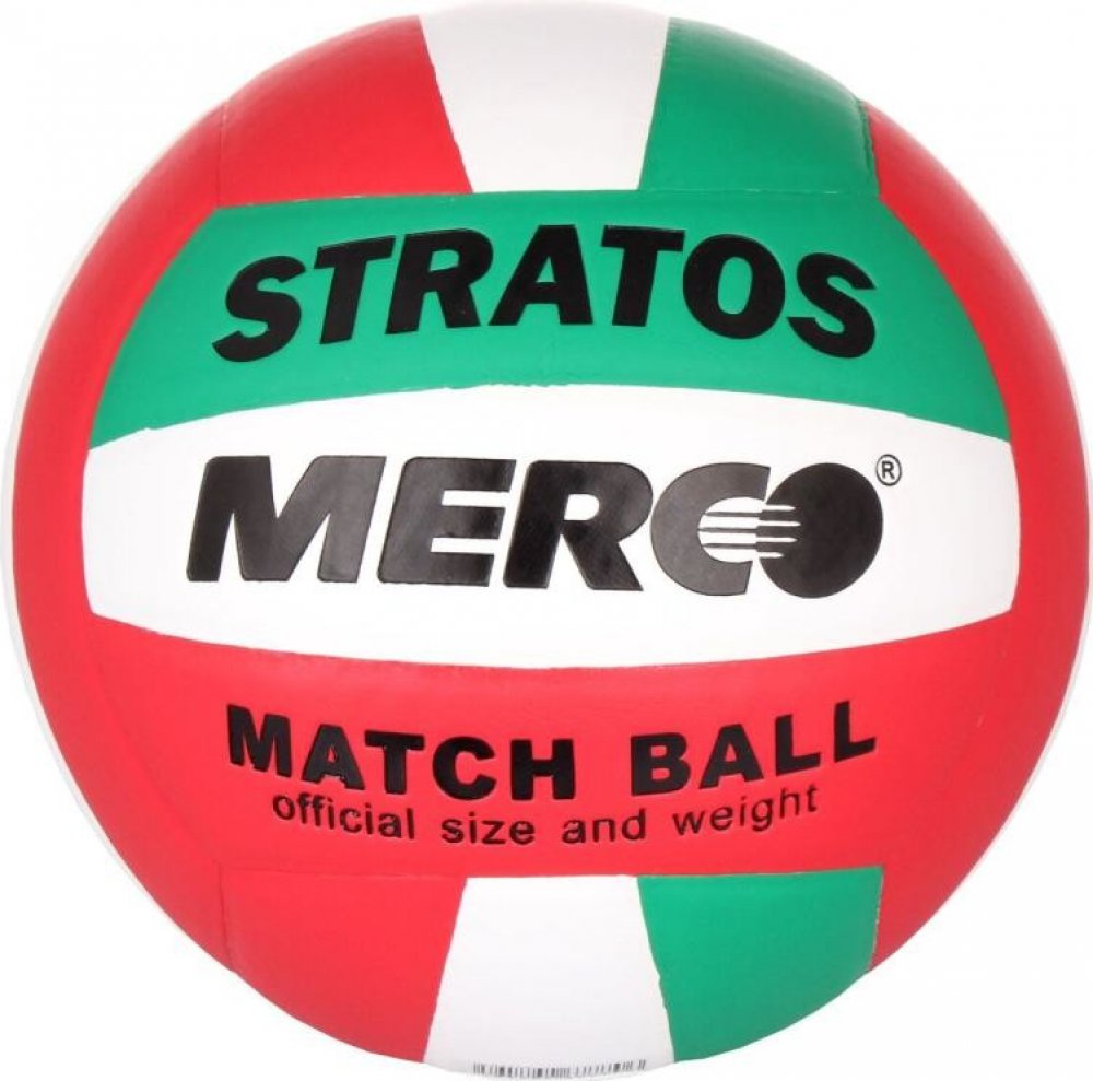 Tréninkový míč na volejbal Merco Stratos je vhodný pro rekreační i pravidelné hráče a školy. Lepený míč je vyrobený z měkčeného PU pláště, který se skládá z 18 panelů a má oficiální velikost s obvodem 650 – 670 mm a hmotností 260 – 280 gramů. Vzdušnice z butyl kaučuku si dlouhodobě udržuje svůj tvar, živý odraz i tlak. Míč je vhodný pro trénink v hale i venku. Upozornění: Míč vždy nafoukněte pomocí navlhčené jehly na doporučený tlak (uvedeno na míči), jinak riskujete poškození míče!