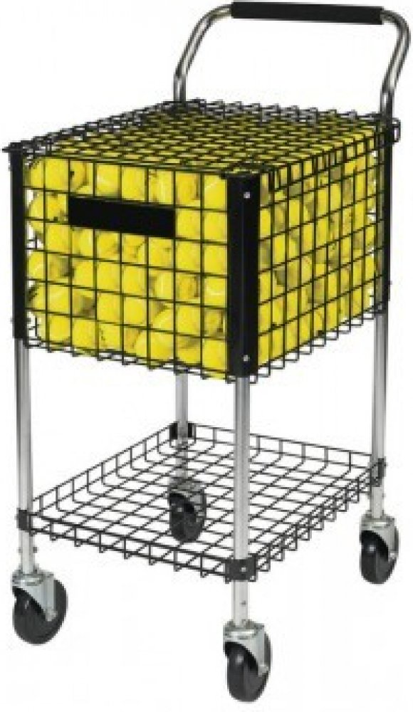 Pojízdný koš na tenisové míče Merco Tennis Cart slouží tenisovým trenérům k jednoduché přepravě míčků na kurt, po kurtu a zase z kurtu pryč. Pojízdný koš na tenisové míče Merco Tennis Cart je navržený pro každodenní pohodlné používání, a proto je vyrobený z odolné chromované ocelové konstrukce, doplněné košem s vyztuženými hranami, uzamykatelným víkem, spodním úložným prostorem, polstrovaným madlem a otočnými kolečky s kuličkovými ložisky. Rozměry samotného koše až pro 225 tenisových míčů jsou 43 x 42 x 38 cm. Tennis Cart: - délka: 425 mm - šířka: 425 mm - výška: 1.240 mm - hmotnost: 11,5 kg