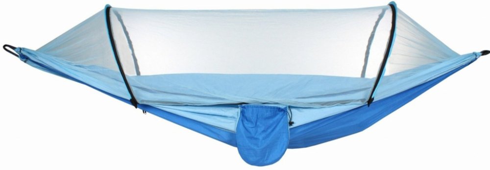 Houpací sítě neslouží pouze k pohodovému odpočinku ve stínu stromů na zahradě, ale především jsou hojně využívané k přespávání v přírodě. Zejména pokud během pobytu v přírodě nehodláte spát na zemi a skládací postele jsou pro vás příliš nepraktické, pověste mezi stromy houpací síť Hamaka Ultra, ponořte se do jejího hebkého polyesterového vaku a spěte bez obav z dotěrného hmyzu nebo chladu od země. Hamaka je totiž vybavená integrovanou moskytiérou s oboustranným zipem, která díky dvěma ohebným prutům ze sklolaminátu vytváří tunel, tím na vás nebude moskytiéra bezprostředně naléhat a poskytne vám pro hmyz neprostupnou bariéru. Svůj elipsovitý tvar má díky stahujícím popruhům s karabinou na koncích, jenž slouží k přichycení za příslušné popruhy a upevnění k pevným bodům. Celková délka sítě je 200 cm a ve svém středu je široká 145 cm. Nosnost houpací sítě je do 100 kg a díky nízké hmotnosti 0,72 kg a skromným rozměrů po sbalení 30 x 25 x 10 cm ji snadno přibalíte do batohu. Pohodlnou, komáry nerušenou noc v přírodě Vám zprostředkuje houpací síť s moskytiérou Hamaka Ultra.