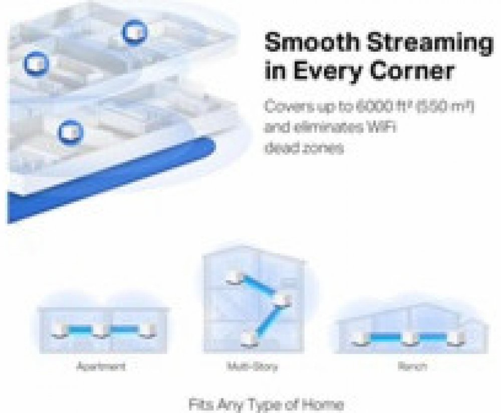 využívá 3 jednotek k dosažení bezproblémového celoplošného Wi-Fi pokrytí a