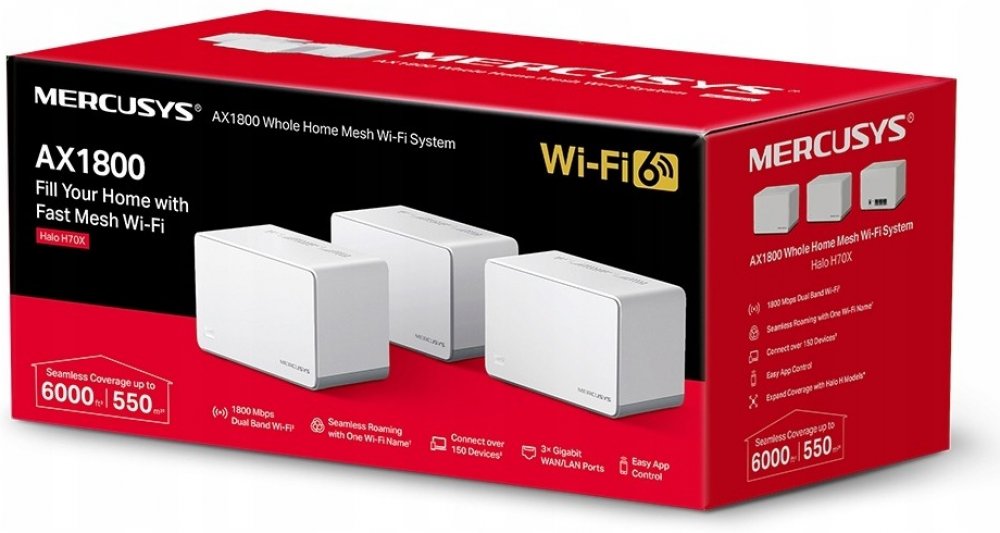 Pokrytí až 550 m2. Plynulé přepínání mezi zařízeními v jedné síti. Lehké ovládání díky aplikaci. Připojení více než150 zařízení.