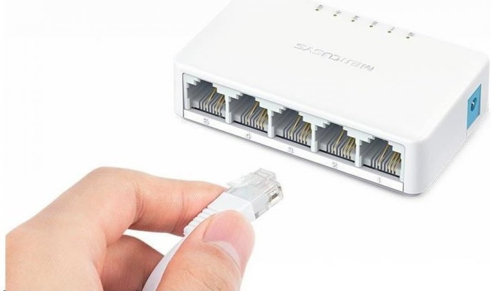 Switch MS105 Mercusys je napájen externím adaptérem (5 V /