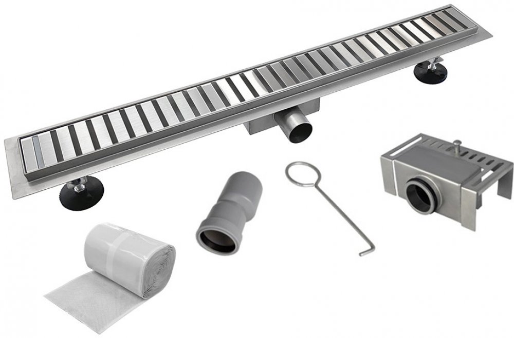 Celonerezové odtokové žlaby této řady představují nové, moderní řešení sprchových koutů a koupelen. Ve sprchových koutech nahrazují vaničky a dotvářejí estetický ráz koupelny.- celonerezové tělo žlabu- nerezová vnitřní vytahovací část sifonu- výškově stavitelné nožičky- materiál žlabu: nerezová ocel (AISI 304)- materiál sifonu: nerezová ocel (AISI 304)Nerezové sítko a zápachová uzávěra.Odtokový žlab je dodáván včetně roštu STRIP, který se vyznačuje moderním designem a prořezanými pruhy.