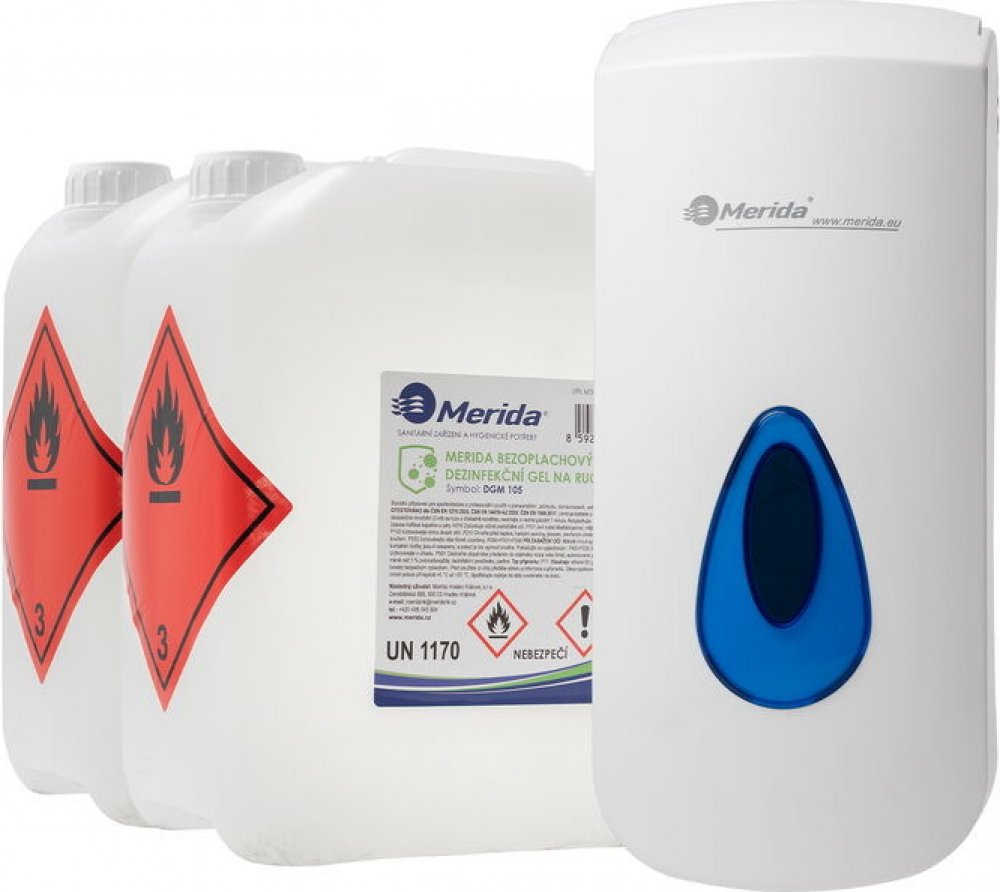Merida Dávkovač mýdla DTN101 + 2 ks bezoplachový dezinfekční gel DGM105 5l transparentní