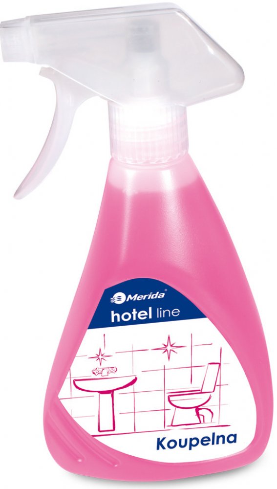 Merida Hotel Line je výborným čisticím prvkem pro čištění koupelen i toalet. S tímto přípravkem vyčistíte také umyvadla, sprchové kouty, vany či koupelnová kování. Přípravek tyto koupelnové prvky nejenže spolehlivě vyčistí, zbaví je vodního kamene a dodá jim potřebný lesk, ale navíc prostor koupelny provoní příjemnou vůní. Balení prostředku na koupelny Merida Hotel Line disponuje objemem 500 ml.