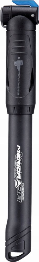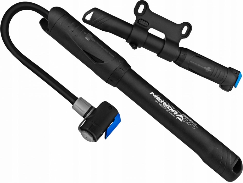 POZNÁMKY PUMPA MERIDA ECO ROAD MINI; Materiál: plast; délka: 225 mm; univerzální, blokovatelná hlava; Max. Tlak: 6,91 atmosfér; držák na rám; výsuvná hlava na gumové hadici, zpětný ventil