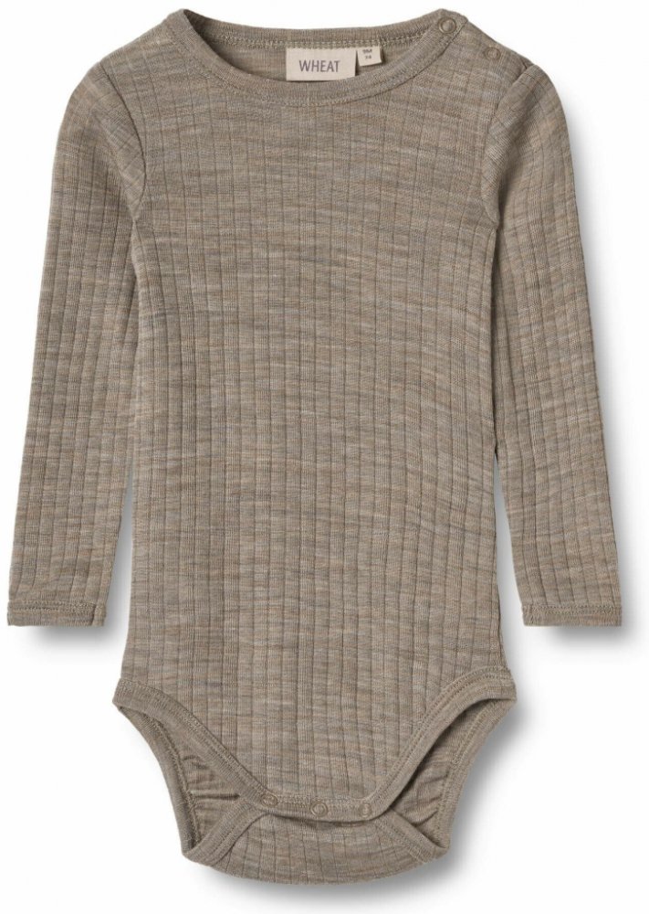 Merino body s hedvábím dětské dlouhý rukáv hnědé khaki melange Lucca Wheat