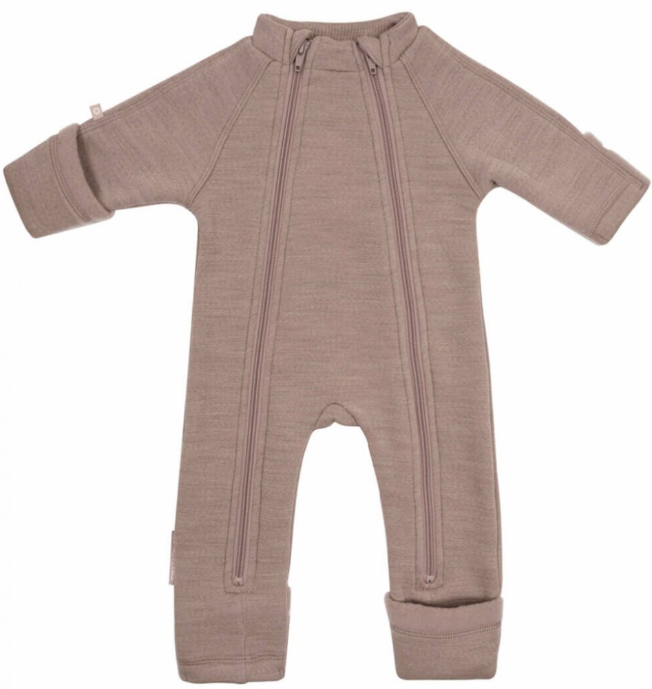 Merino overal bez kapuce s dvojitým zipem hnědý powder melange Smallstuff