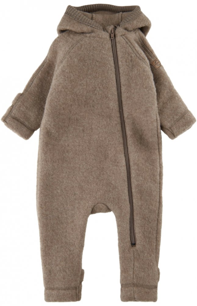 Merino overal na zip s oušky hnědý Melange Denver Mikk Line