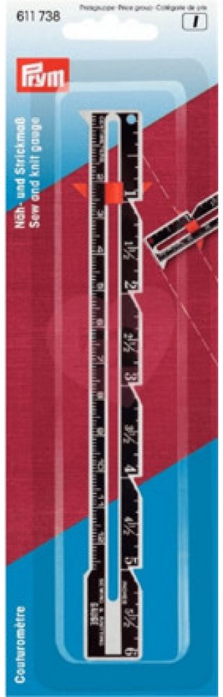 Měřítko na patchwork v cm/palcích - PRYM je malé praktické ruční měřítko od značky Prym, díky své multifunkčnosti zjednodušuje značení lemů, sámků, knoflíkových dírek a dalšího šití. Díky velikosti měřítka lze provádět měření přímo na šicím stroji nebo při pletení a háčkování. Pomocí červeného plastového jezdce lze přednastavit a snadno přenášet rozměry rozestupu lemu, knoflíkové dírky a jiné. Dík...