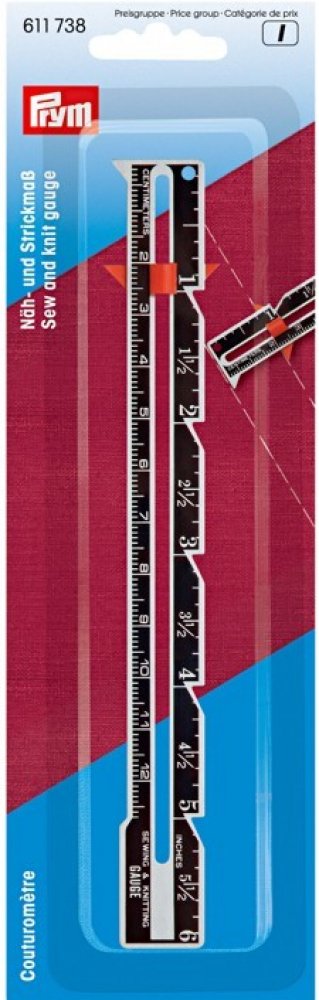 Malé, praktické měřítko, které svou multifunkčností usnadňuje spoustu měřící a značkovací práce při šití lemů, obrub a knoflíkových dírek přímo na šicím stroji.