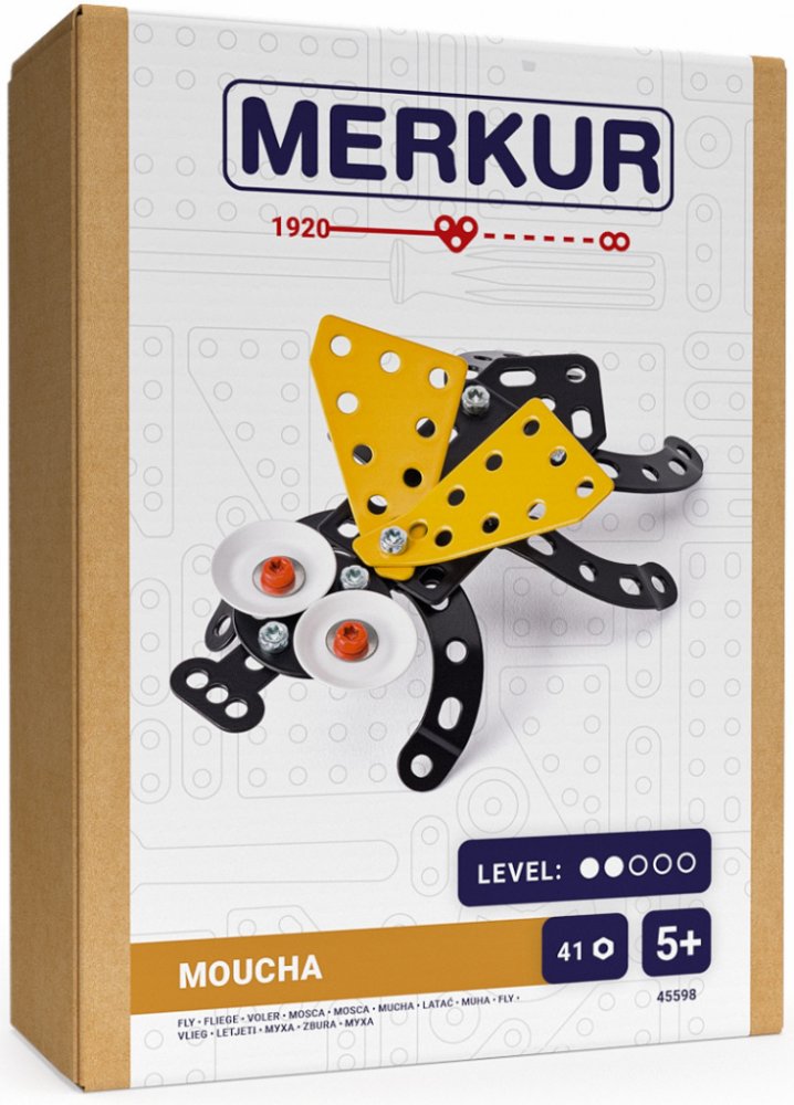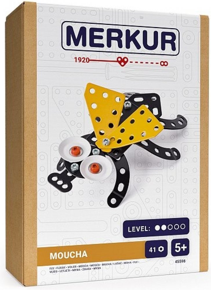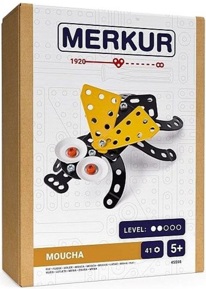 MERKUR 45598 Brouci: Moucha. Kvalitní, kovová konstrukční stavebnice, 41 dílků, model 14cm, součástí návod + pracovní nářadí. Vyrobeno v Česku.