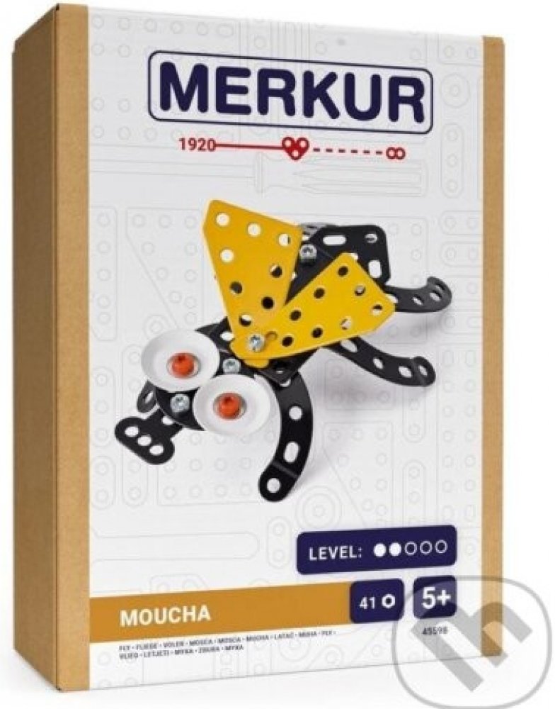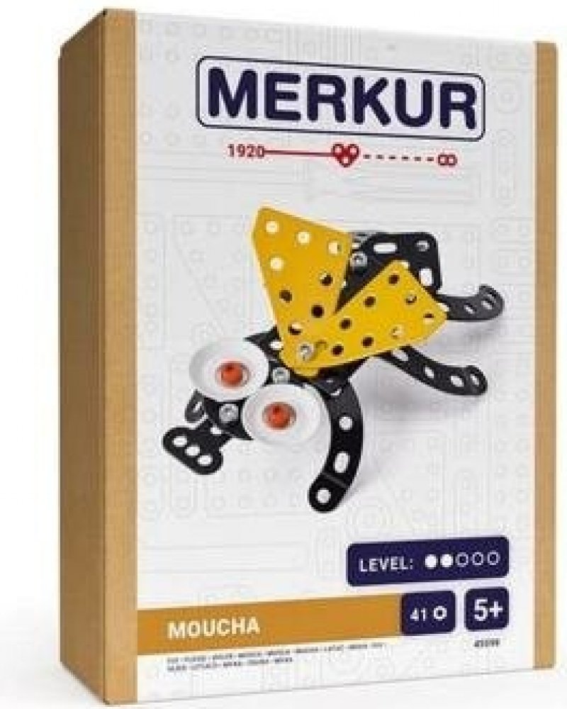 Kovový model Mouchy z kolekce hmyzáků obsahuje součástky nutné pro sestavení tohoto modelu. V balení najdete podrobný návod, Merkur sadu nářadí a unikátní Merkur díly. Merkur díly jsou univerzální a tak vás neomezí v jakékoli modifikaci a nápadu. Stavebnici tak můžete sestavit podle přiloženého návodu nebo čistě podle svých představ. Se sestavenými modely si lze hrát, jsou velmi odolné. Podporuje a rozvíjí manuálních schopnosti, logické myšlení, soustředění.