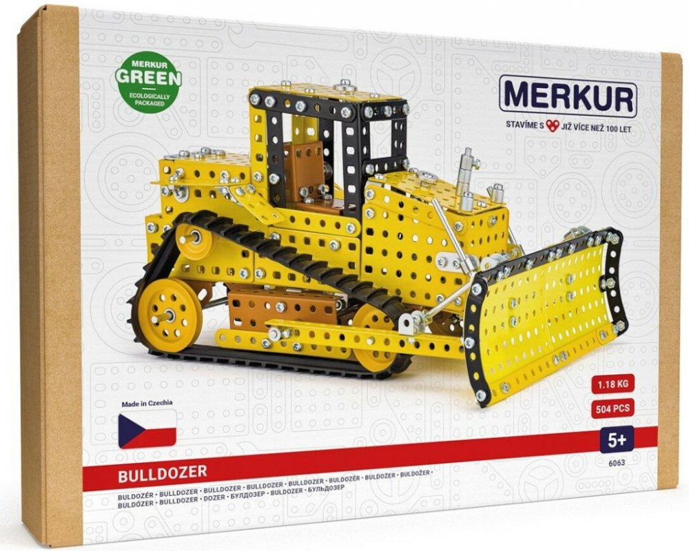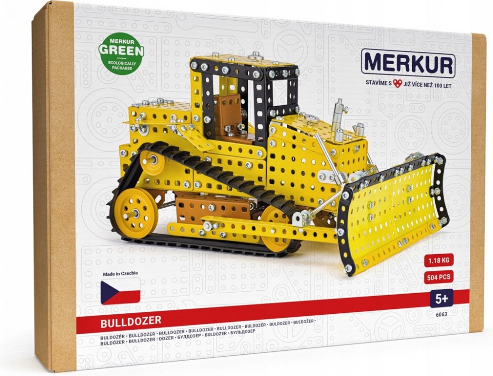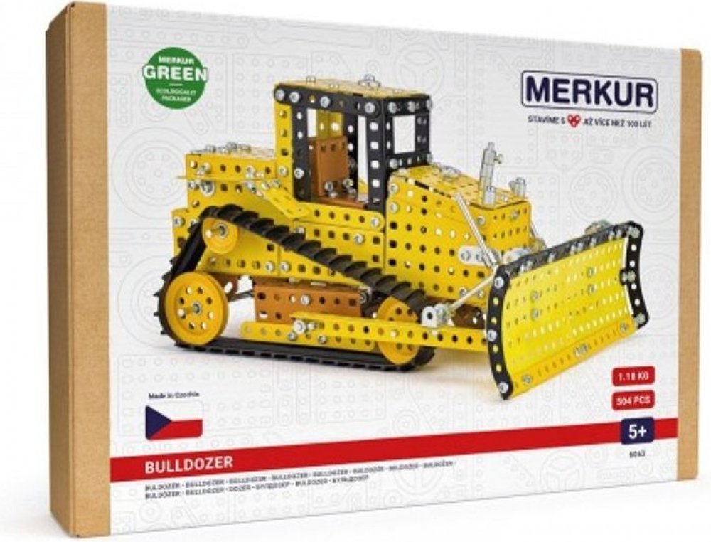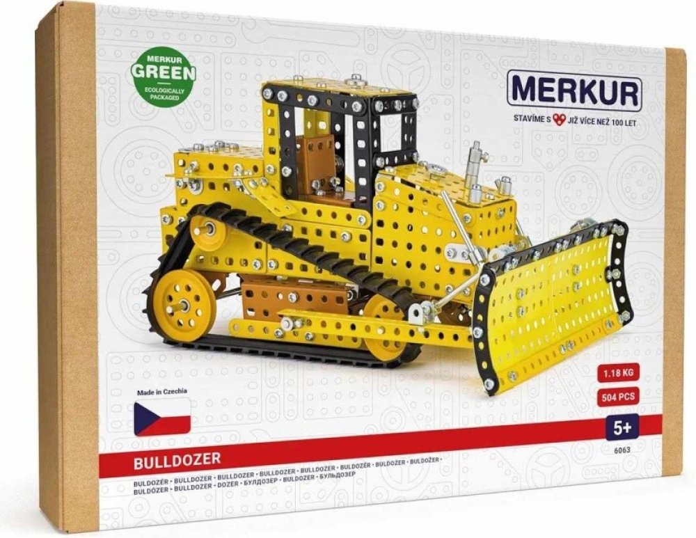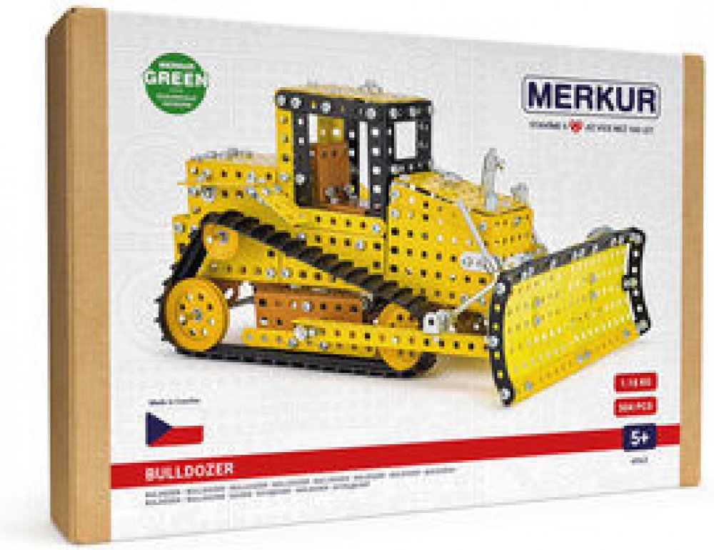 Klasická stavebnice Merkur obsahuje součástky nutné pro stavbu buldozeru. V balení najdete podrobný návod, Merkur sadu nářadí a unikátní Merkur díly. Merkur díly jsou univerzální a tak vás neomezí v