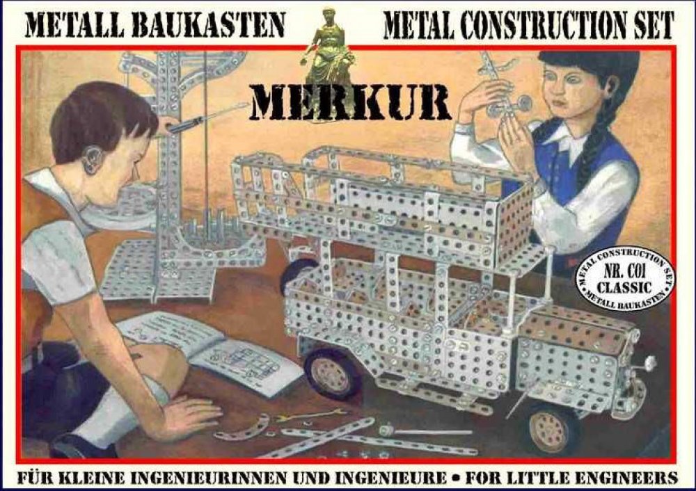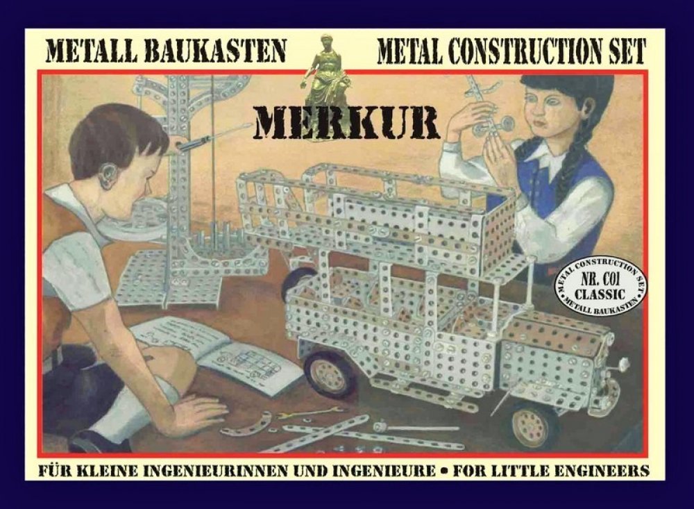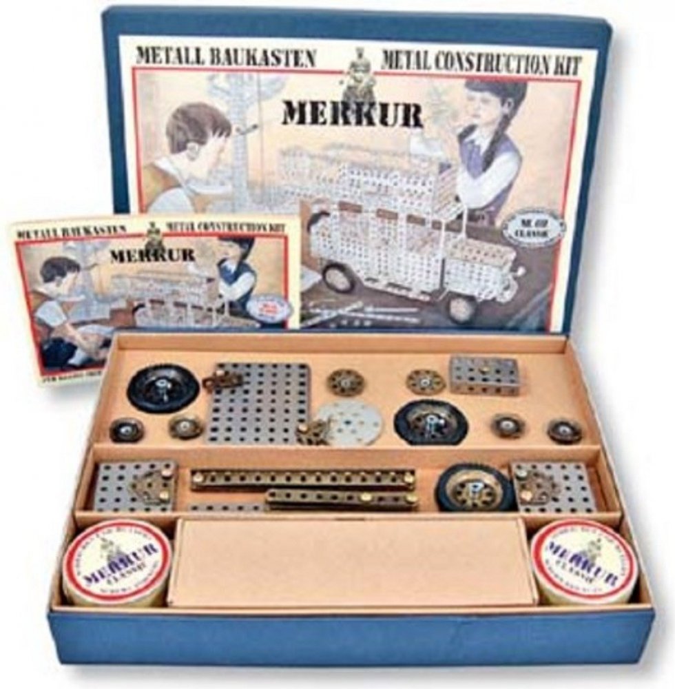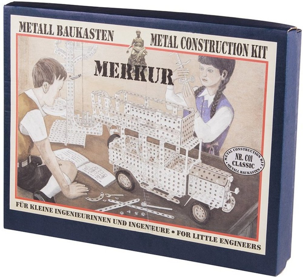 Jedná se o exkluzivní stavebnici, která je replikou podobných stavebnic ze začátku minulého století. Veškeré součástky jsou z tradičních materiálů a v barvách jako je zinek, patina či bezbarvý lak. Rozměr krabice: 36 x 28 x 5,5 cmVhodné od 3 letTechnické údaje:Roky 03Obsah balení:Stavebnice MERKUR CLASSIC C01 v krabici 36x28x5cmPokud není uvedeno jinak, cena se vztahuje na 1 ks produktu.Konkrétní ...
